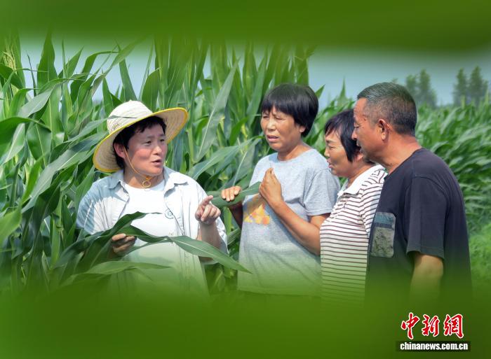 图为梁芳芳(中)为农户指导田间管理技术。李新义 摄