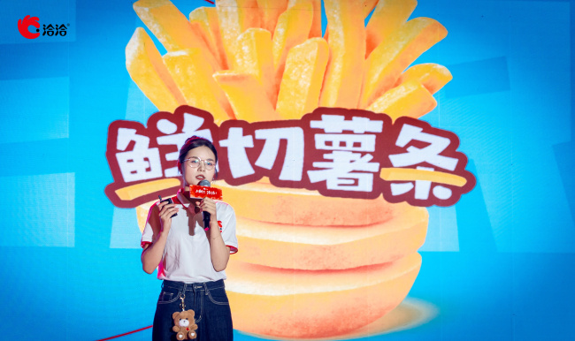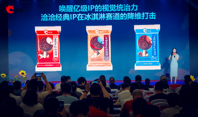 冰淇淋的产品经理方丽是个95后,一袭浅蓝色连衣裙上台。其洪亮的声音,能让台下的经销商感受到满满的活力。