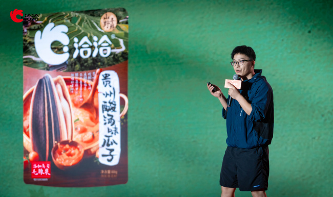 洽洽的新品发布会不能没有瓜子。这次的山野风味新品瓜子颠覆了很多人对瓜子的认知。31岁的曹文帅一身户外装备现身发布会,他作为山野系列瓜子产品人表示,洽洽山野风味系列瓜子聚焦贵州酸汤、云南菌菇(“见手青”)、四川竹香三大地域特色,绑定“户外经济”“山野精神”,呼应年轻人“在上班和上进之间选择上山”的生活态度,并采用清洁配方,配料表仅为同类产品一半。