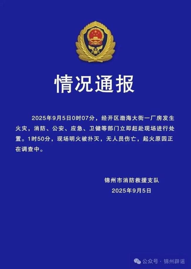 官方通报锦州一厂房凌晨发生火灾 最新消息引发关注