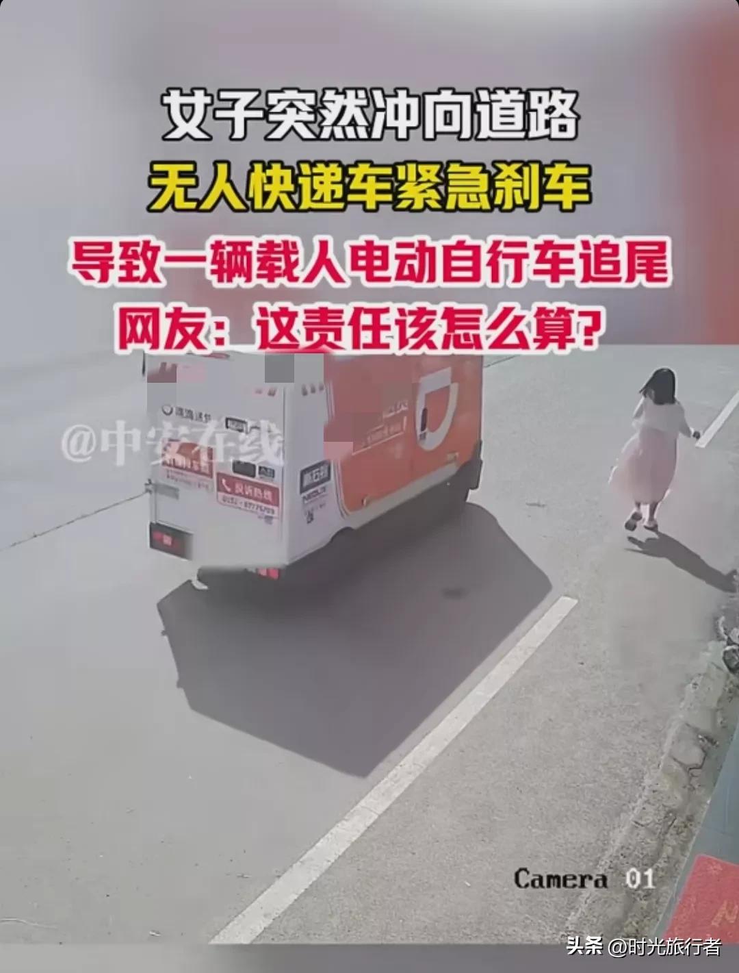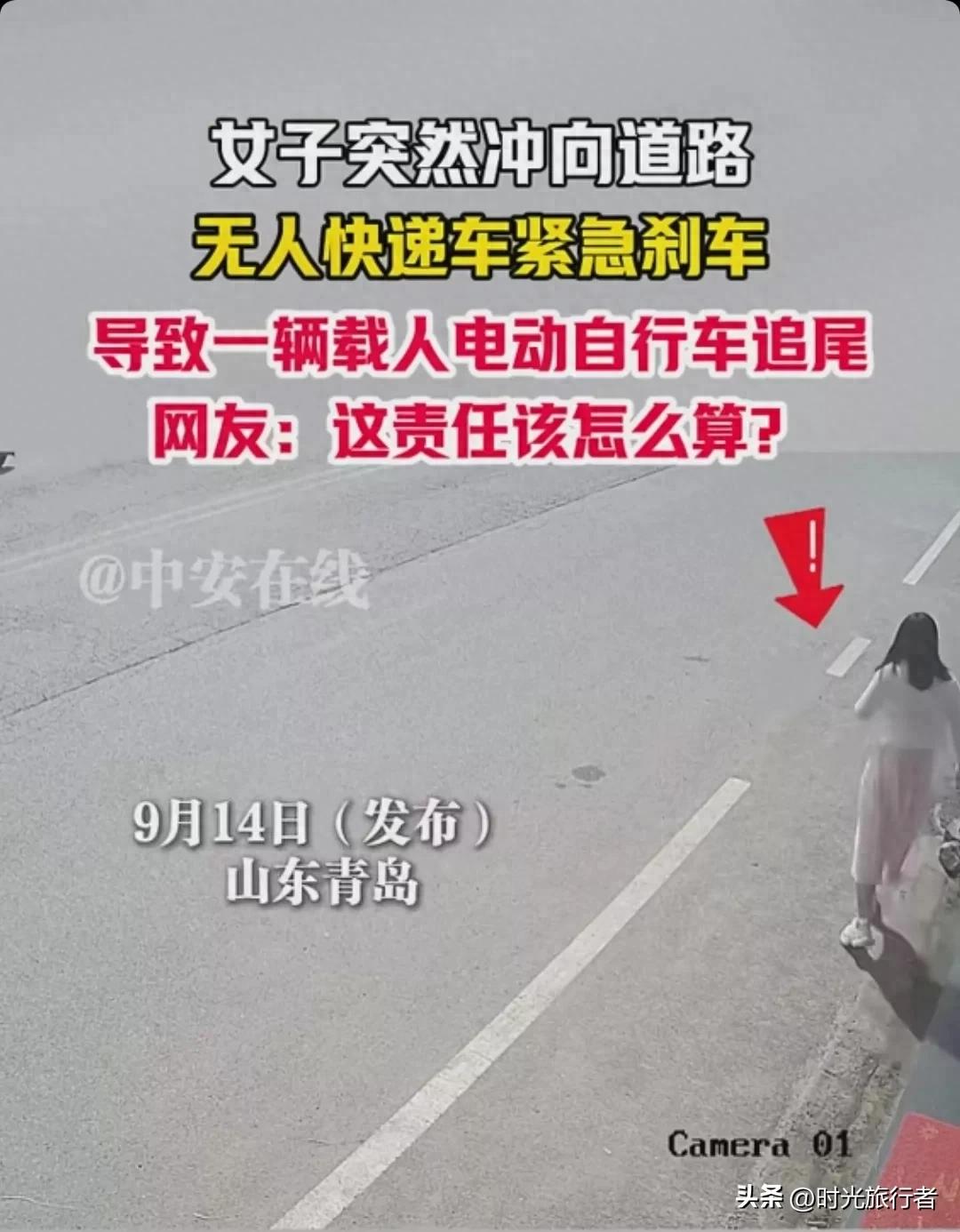 9月14日,据中安在线等多家媒体的报道。近日,网传一女子突然冲向机动车道,无人快递车急刹,导致载娃电动车追尾的视频,引发了网友们的广泛关注和热议。