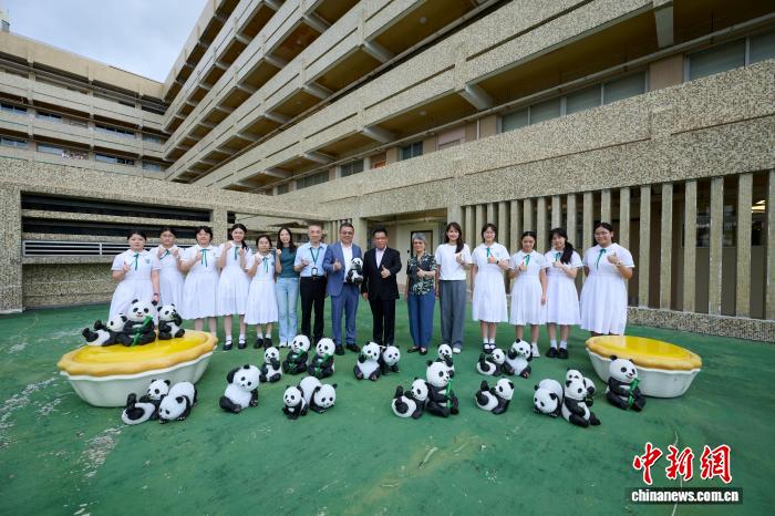 9月15日,香港培侨中学获赠今年“维园庆回归”活动“打卡”装置——“蛋挞”和“大熊猫”。(培侨中学供图)