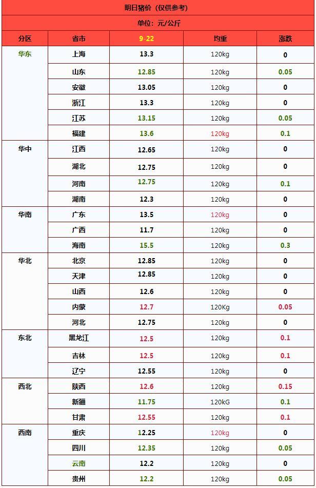 受节日支撑转强,部分养殖端惜售挺价,短期内猪价或止跌。但由于月末在即,本月规模以上猪企出栏计划完成不佳,部分企业出栏滞后1-2天,月底养殖端仍有增量出栏压力,供应存在过剩风险。根据屠宰场调价收猪情况,预计9月22日外三元标猪报价为12.75元/公斤,市场以窄幅震荡为主,需关注集团猪企出栏节奏变化。
