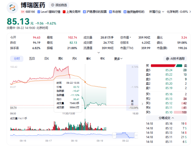 博瑞医药午后股价闪崩,一度跌逾10% 2025-09-23 北京商报 HaiPress 图源:网络9月22日午后,博瑞医药(688166)股价跳水回落,盘中一度跌逾10%。交易行情显示,博瑞医药9月22日高开0.47%,盘中一度涨逾8%。截至北京商报发稿,博瑞医药报84.63元/股,跌幅为10.15%。当日振幅达21.88%。(责任编辑:zx0600) 免责声明:本文转载自其它媒体,转载目的在于传递更多信息,并不代表本网赞同其观点和对其真实性负责,亦不负任何法律责任。 本站所有资源全部收集于互联网,分享目的仅供大家学习与参考,如有版权或知识产权侵犯等,请给我们留言。 最新 孩子总揉眼打喷嚏?苏老伯乳胶床垫,护有娃家庭安睡无忧 年终大冲刺,中美科技大厂都杀疯了 超10亿元首付款!重庆药企再出海 云南民宿协会:携程等平台存在不正当竞争,正式启动反垄断维权工作 友情链接 中文资讯网 数字资产网 区块链网 科技在线 财富综合资讯 女性时尚网 在线新闻 派农源-文化旅游资讯 财经新闻网 环球快讯 世界新闻网 全网新闻门户 全网新闻门户 南方新闻网 四方新闻 猛料新闻门户 安徽新闻网 数码新闻 人人新闻 区块新闻网 日报新闻 奇奇新闻网 上海科技网 信阳新闻 武威新闻 影视追踪 青岛新闻 微商新闻 Global商务 巴士快讯 中国报刊网 东北资讯 平阳网 多维新闻门户 旅行快讯 物联网 5G 模组在线 海外推广资讯 海外发稿网 海外推广