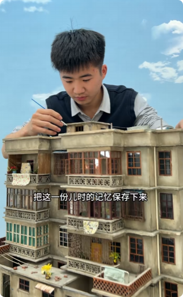 男生回应做老房子微缩模型年入百万 巧手复刻乡愁