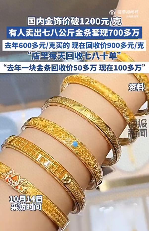 金价飙升有人卖金条变现700多万 珠宝品牌金价跟涨