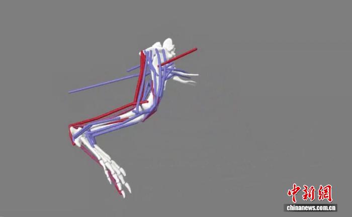 美洲短吻鳄后肢的肌肉骨骼模拟。中国科学院古脊椎所 供图