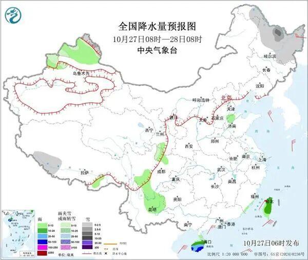 今天,降雪短暂减少减弱,但明天起随着高空槽发展和孟加拉湾扰动水汽输送,青藏高原雨雪天气将再度加强,西藏东部、川西高原北部的部分地区有大到暴雪,局地有大暴雪。中央气象台预计,今天新疆北疆北部、黑龙江中东部、西藏西南部等地部分地区有小雪或雨夹雪,其中黑龙江北部部分地区有中到大雪。海南岛、台湾岛部分地区有中到大雨,其中海南岛南部部分地区有暴雨。