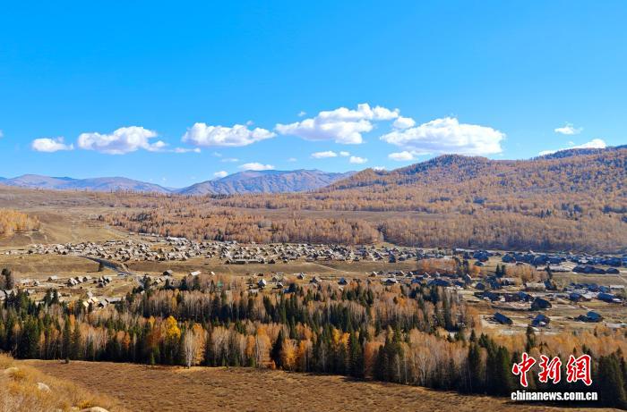 眼下新疆秋意正浓,位于阿勒泰地区布尔津县的禾木村层林尽染,游人如织。