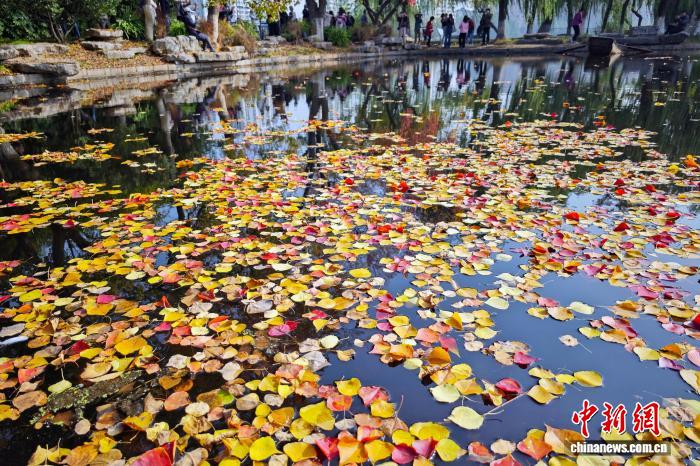 11月10日,南京莫愁湖公园内一株株银杏、水杉、乌桕等色彩斑斓,尽显秋日诗意。中新社记者 泱波 摄