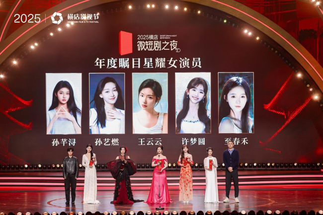 在“2025横店微短剧之夜”活动上,粒粒橙传媒娱乐营销中心负责人杨菲为“年度瞩目星耀女演员”孙芊浔、孙艺燃、王云云、许梦圆、至春禾颁奖。未来,粒粒橙传媒将继续助力该计划,为青年演员提供更多展示和合作机会。