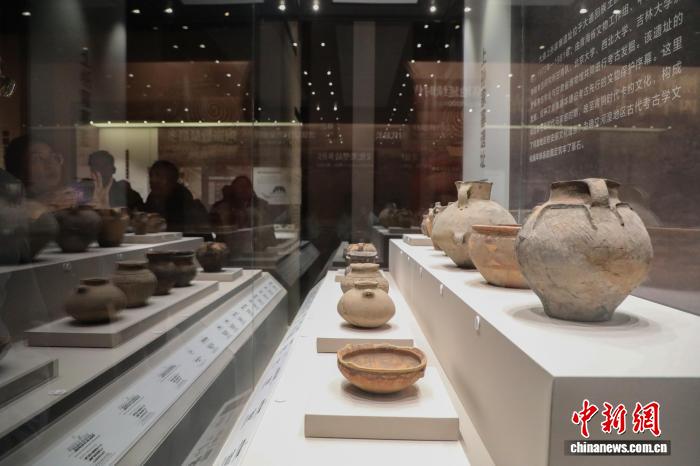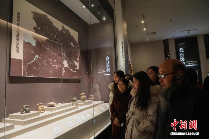 图为与会人员在海东市河湟文化博物馆内参观出土于大通县上孙家赛遗址的陶器。中新社记者 马铭言 摄