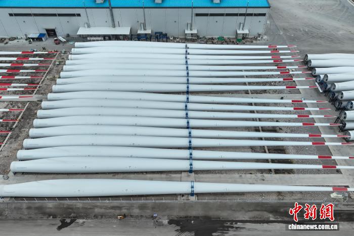 12月11日,航拍待出厂的风电叶片。(无人机照片)记者 瞿宏伦 摄