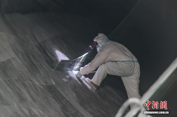 12月11日,工人在检查风电叶片内部。记者 瞿宏伦 摄