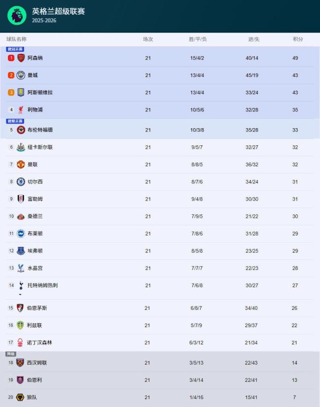 上赛季利物浦和阿森纳一同争冠,最终利物浦力压阿森纳夺冠。进入新赛季,利物浦一度开局5连胜领跑,但随后遭遇连败,排名不断下滑,目前落后榜首阿森纳14分,卫冕希望渺茫。而阿森纳表现稳定,长时间领跑英超积分榜,曼城、切尔西等竞争对手不断丢分,为阿森纳创造了绝佳的争冠机会。