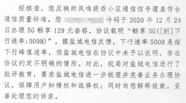 江苏盐城的陈先生因家中5G网速慢而感到困扰。经过检测,他所在楼层的5G网速为35Mbps,楼下则为57.6Mbps,而他购买的每月129元的5G套餐曾标注下行速率可达500M。陈先生多次向盐城电信投诉,并向江苏省通信管理局反映问题。盐城电信解释称,500M是基于实验室理想环境的理论峰值速率,实际使用中会受到多种因素影响。通信管理局核查后确认协议未明确说明这一点,对盐城电信进行了批评教育。
