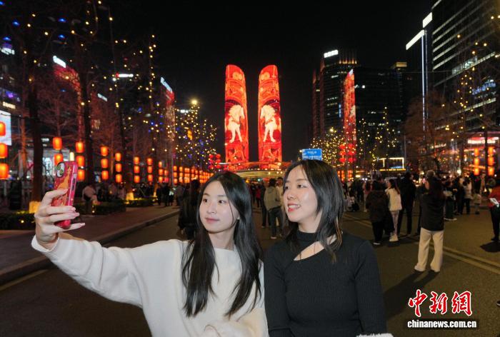 3月3日晚,四川成都,市民在元宵节活动现场拍照留念。中新社记者 安源 摄