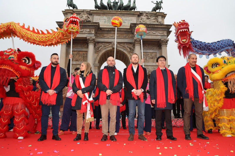 人民网罗马3月2日电 (记者谢亚宏)当地时间3月1日,意大利米兰地标建筑和平门广场锣鼓喧天,彩旗飘扬,由米兰侨界联合主办的“喜迎新春·舞龙舞狮”大联欢活动在此盛大举行。约5万名中意各界友好人士、旅意侨胞及当地民众齐聚一堂,同庆佳节。
