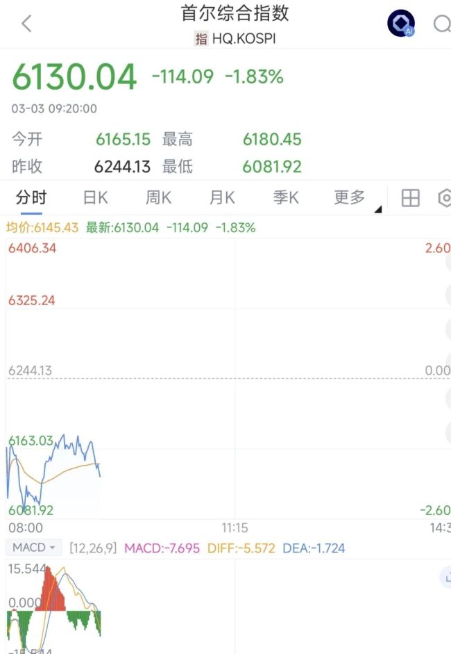 日韩股市开盘大跌 2026-03-04 蓝鲸新闻 HaiPress 3月3日,日韩股市开盘大跌。截至发稿,日经225跌1.06%,韩国首尔综指跌幅扩大至1.83%,报6130.04点。韩元兑美元跌1.5%。韩国金融市场昨日因假期休市。(责任编辑:zx0600) 免责声明:本文转载自其它媒体,转载目的在于传递更多信息,并不代表本网赞同其观点和对其真实性负责,亦不负任何法律责任。 本站所有资源全部收集于互联网,分享目的仅供大家学习与参考,如有版权或知识产权侵犯等,请给我们留言。 最新 三环华兰王强:以产业思维破局,以责任担当赋能板材行业蝶变 小猿AI学习机T6荣登三大电商平台4000-5000元档学习机销售额第一 清华大学心理与认知科学系携手猿编程成立AI教育研究中心,共筑学术高地 茅台提价,其他白酒跟吗? 友情链接 中文资讯网 数字资产网 区块链网 科技在线 财富综合资讯 女性时尚网 在线新闻 派农源-文化旅游资讯 财经新闻网 环球快讯 世界新闻网 全网新闻门户 全网新闻门户 南方新闻网 四方新闻 猛料新闻门户 安徽新闻网 数码新闻 人人新闻 区块新闻网 日报新闻 奇奇新闻网 上海科技网 信阳新闻 武威新闻 影视追踪 青岛新闻 微商新闻 Global商务 巴士快讯 中国报刊网 东北资讯 平阳网 多维新闻门户 旅行快讯 物联网 5G 模组在线 海外推广资讯 海外发稿网 海外推广