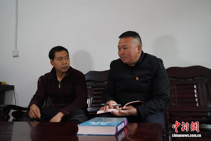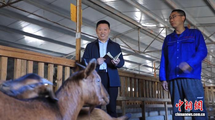 图为全国人大代表、四川省南江县五郎黄羊养殖专业合作社理事长汪其德(左)。受访者 供图