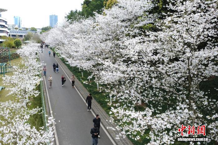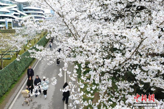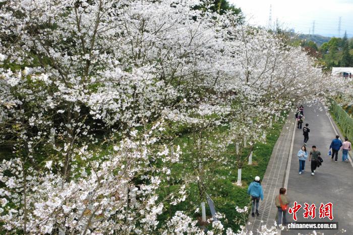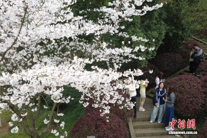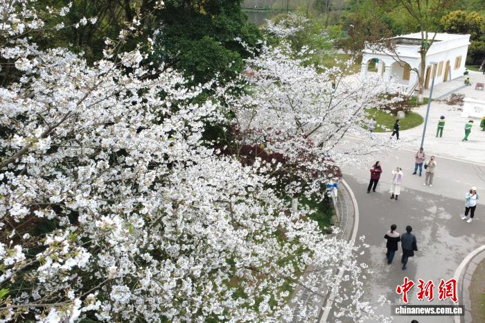 重庆园博园樱花盛开 游客踏春赏花感受春日浪漫