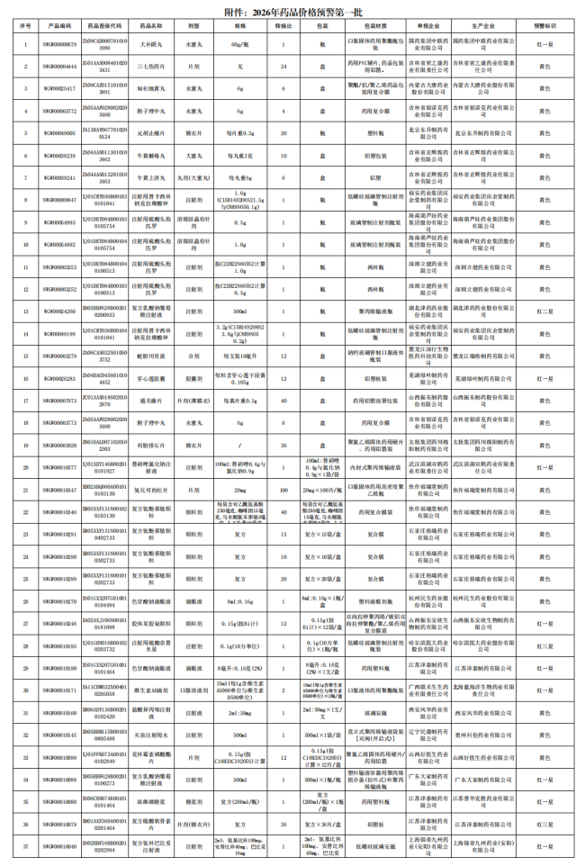 2026年首批药品预警情况公布。