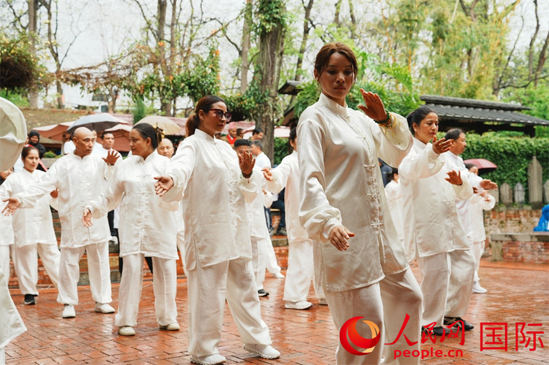 尼泊尔太极拳爱好者进行太极拳表演。人民网记者 李墨摄