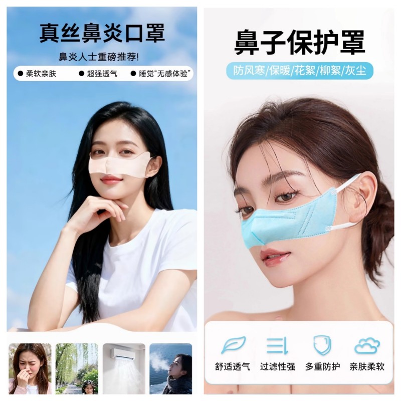 此外,对于每天奔波在通勤路上的上班族和学生党来说,时间紧凑、环境复杂,需要的是“即取即用、卫生省心”的防护选择。迪福伦的高性价比一次性鼻罩,以三层透气滤材结构和蝴蝶造型的立体剪裁,兼顾透气与贴合度,无论是早高峰通勤、办公室日常佩戴、居家休息,还是花粉季、雾霾天的日常出行,都能轻松适配。而针对需要在睡眠时佩戴,或者喜欢亲肤质感的用户,迪福伦真丝款鼻罩精选100%桑蚕丝,采用双层19姆米素缎工艺,触感如面膜般细腻柔滑,无论是午间小憩还是整夜安睡,都有助于温湿化鼻腔环境,实现安眠。