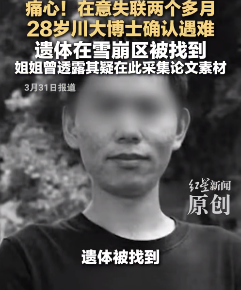 当地时间3月30日上午,有德国与奥地利游客在意大利多洛米蒂山区富内斯谷的梅兹迪山口附近雪崩区域发现一具遗体。经确认,遗体身份为1月19日失踪的中国28岁博士留学生黄鹏。