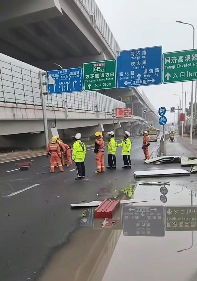 上海绕城高速两辆货车相撞 2人受伤声屏障碎裂