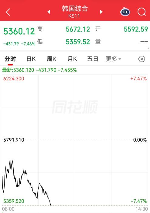 中东局势连续重创韩国股市 韩综股指盘中失守5400点