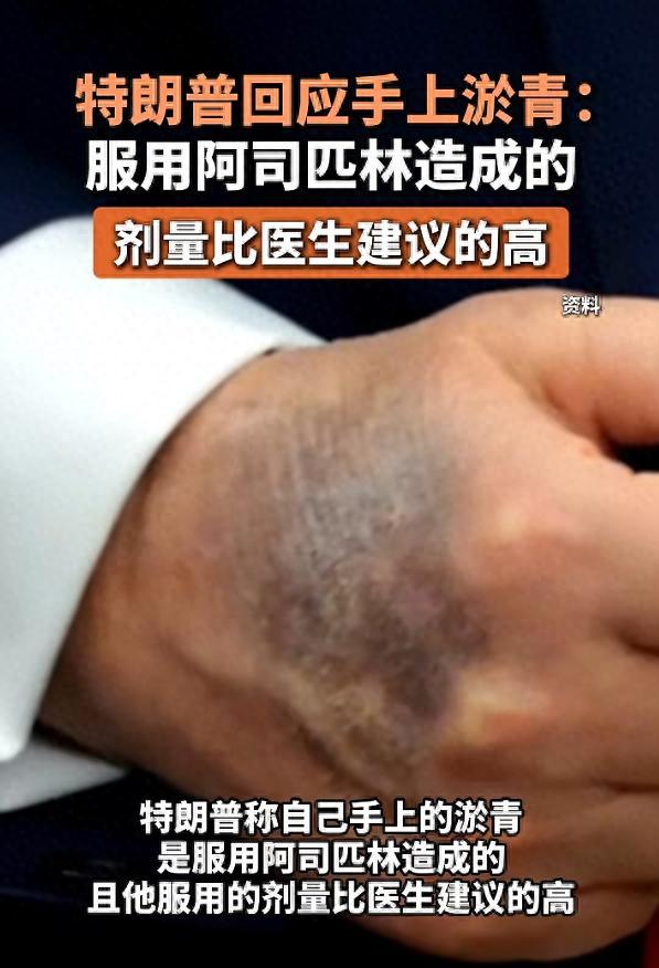特朗普手上出现淤青 本人公布原因 阿司匹林所致