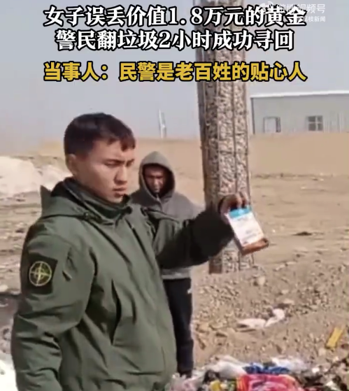 近日,新疆克州乌恰县警方接到李女士报警,称其含1.8万元黄金的快递被误当垃圾清运,希望民警能帮助自己寻回。民警迅速联系清运公司锁定区域,赴垃圾处理厂,不顾脏乱翻找近2小时,最终完好找回。...