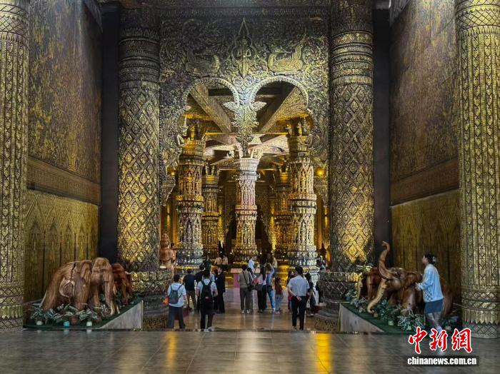 图为游客在馆内参观。杨轮娇 摄 图为博物馆大殿内的立柱。杨轮娇 摄 图为馆内展出的木雕人像作品。中新社记者 潘雨洁 摄