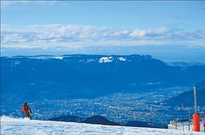 蓬勃发展的中国冰雪产业为波马、卢西诺等法国企业带来发展机遇。图为法国山地运动产业枢纽城市格勒诺布尔附近的尚鲁斯雪场,这里配备有波马厢型缆车,也是卢西诺的重要产品测试场地。记者尚凯元摄法国阿尔卑斯山麓,